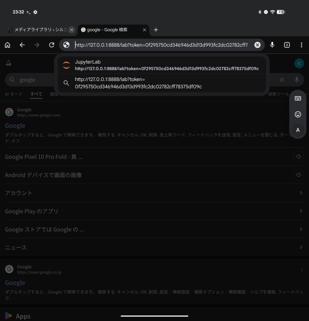 具体的には、Pixel 10 pro foldを用いたAndroid純正Linuxターミナルのインストールと、JupyterlabによるAndroidブラウザを用いたPythonプログラミン環境の構築方法の紹介になります。